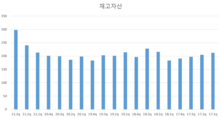 이런 수주 잔고의 증가에 따라 재고 자산도 꾸준하게 증가하는 모습을 보여주고 있네요.