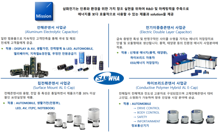 삼화전기는 콘덴서 만드는 회사입니다.