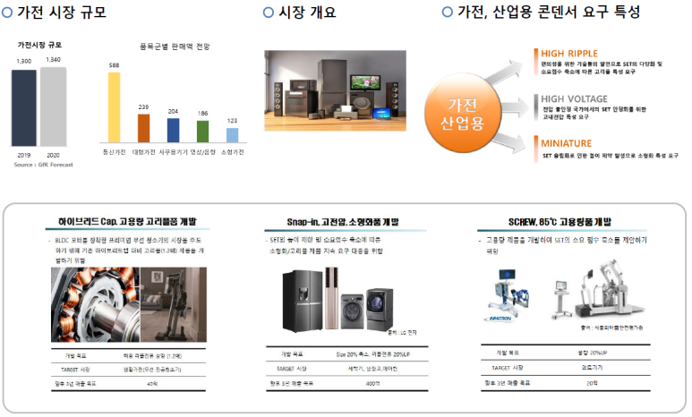 그리고 현재 가전에 치중되어 있는 매출을 4차산업, 전장용, 친황경 고부가가치 제품으로 확대하는 계획인 것 같습니다.