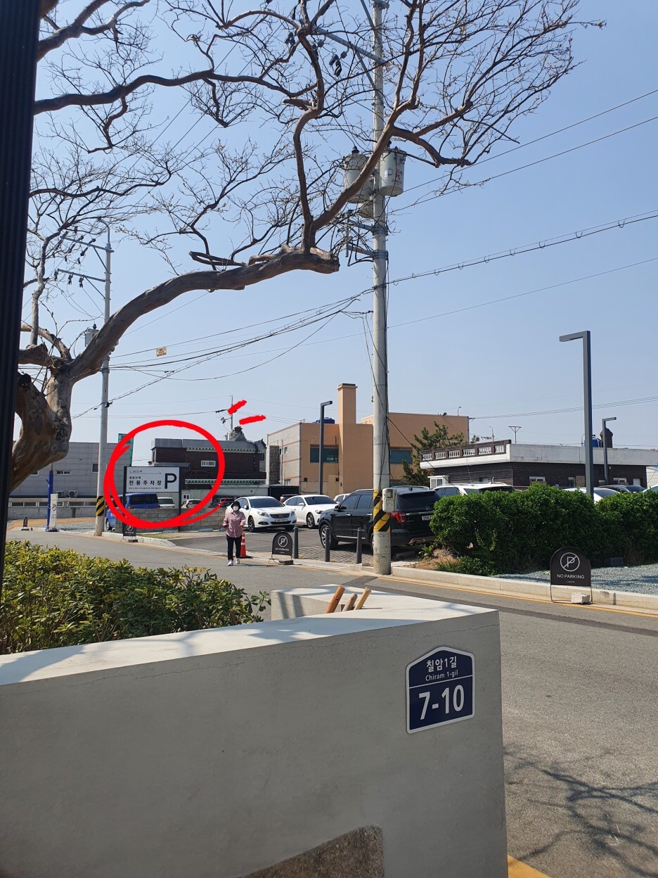 바닷가근처 또는 건물 뒷편이 주차장이 크게 있어서