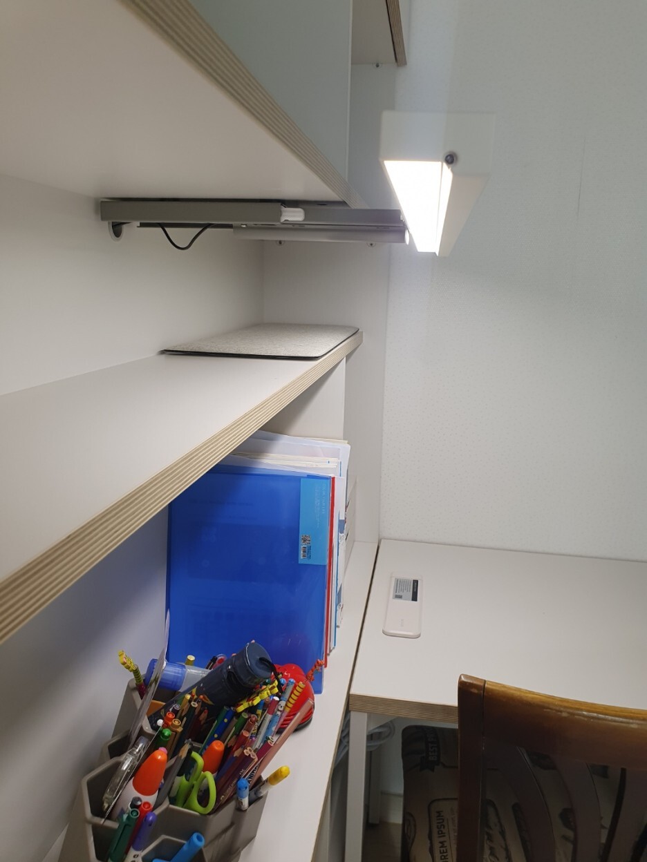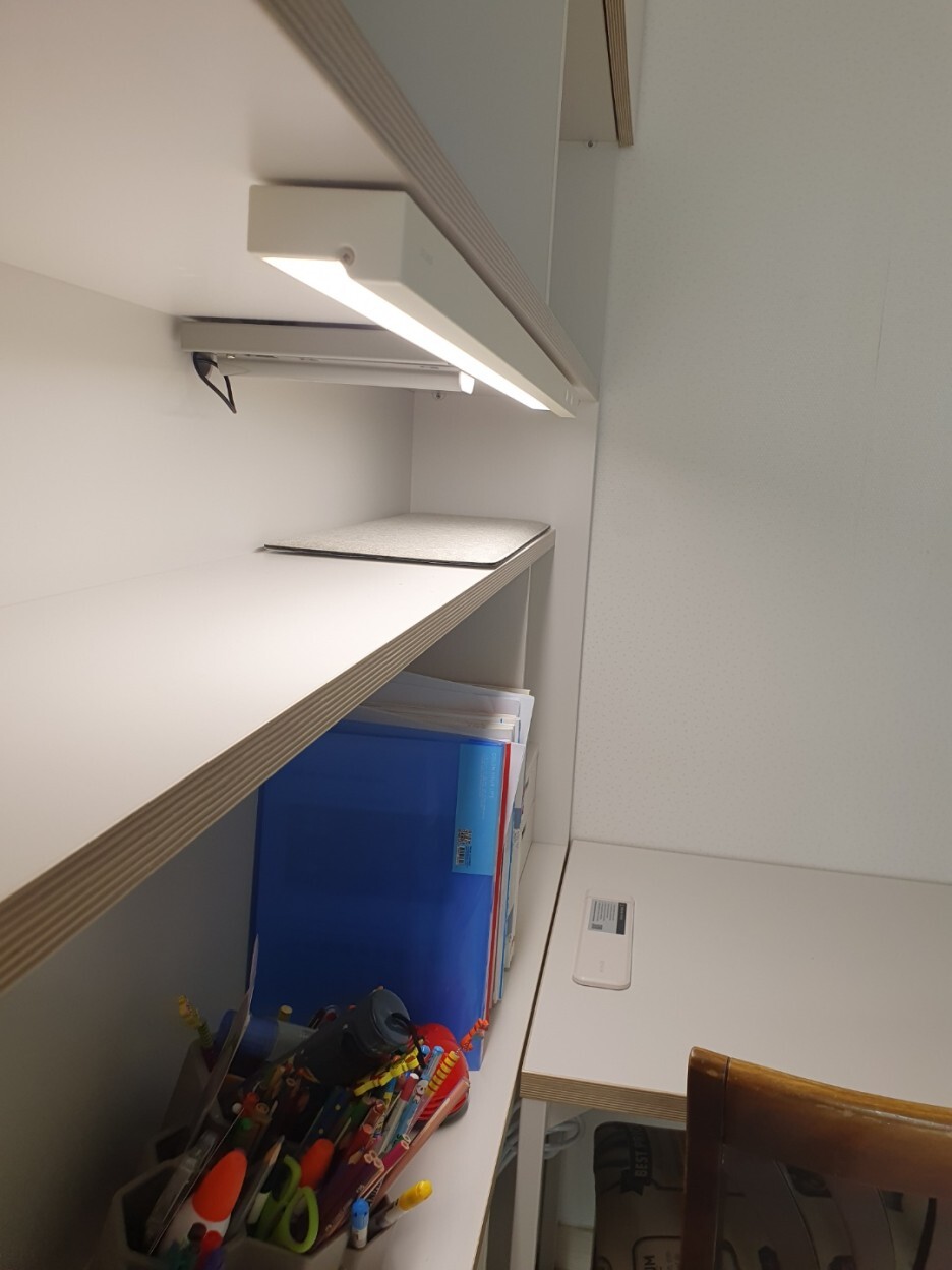 책상위 조명에 불 들어오게 하려면 전기를 써야하는데...