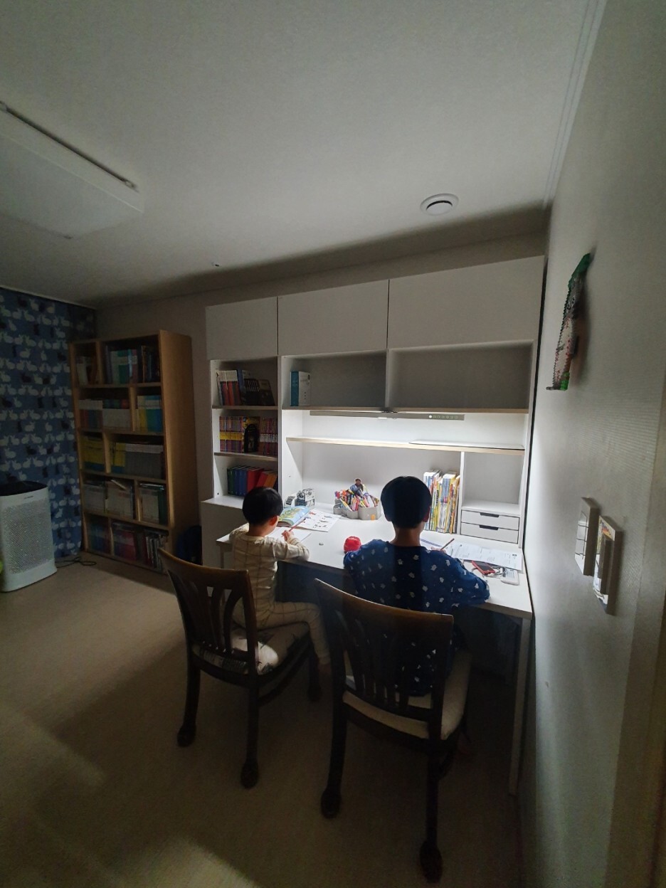 형아 책상 생기니 동생도 같이 공부한다고 난리ㅠㅠㅠ