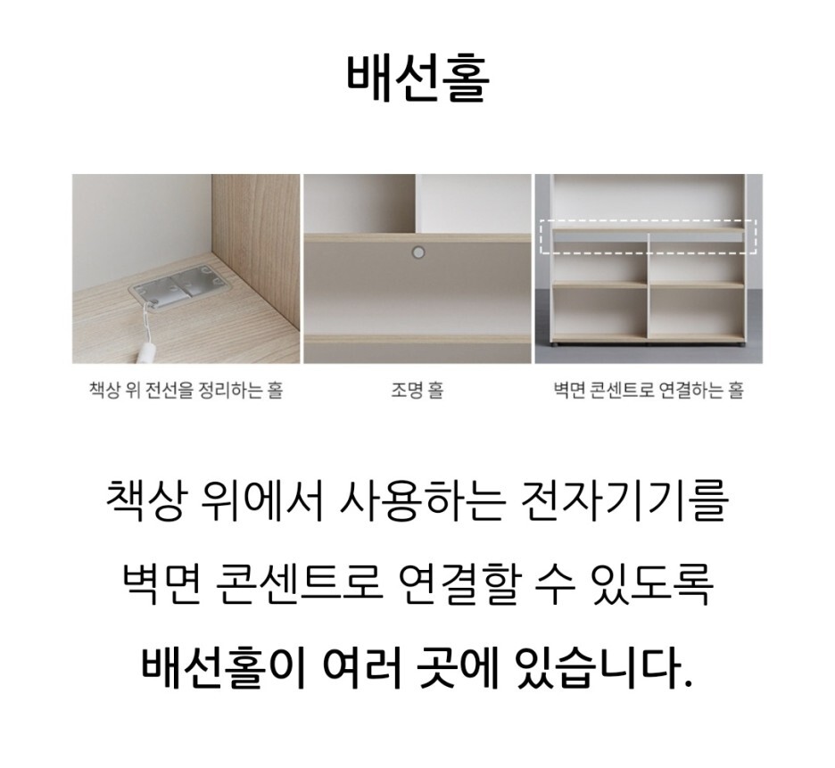 벽면 콘센트로 연결할 수 있는 홀이 있어요.