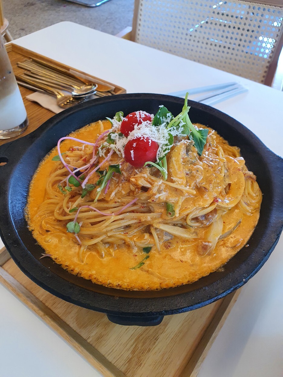 모내기 새참, 김치파스타, 각자 원하는 음료 주문!!