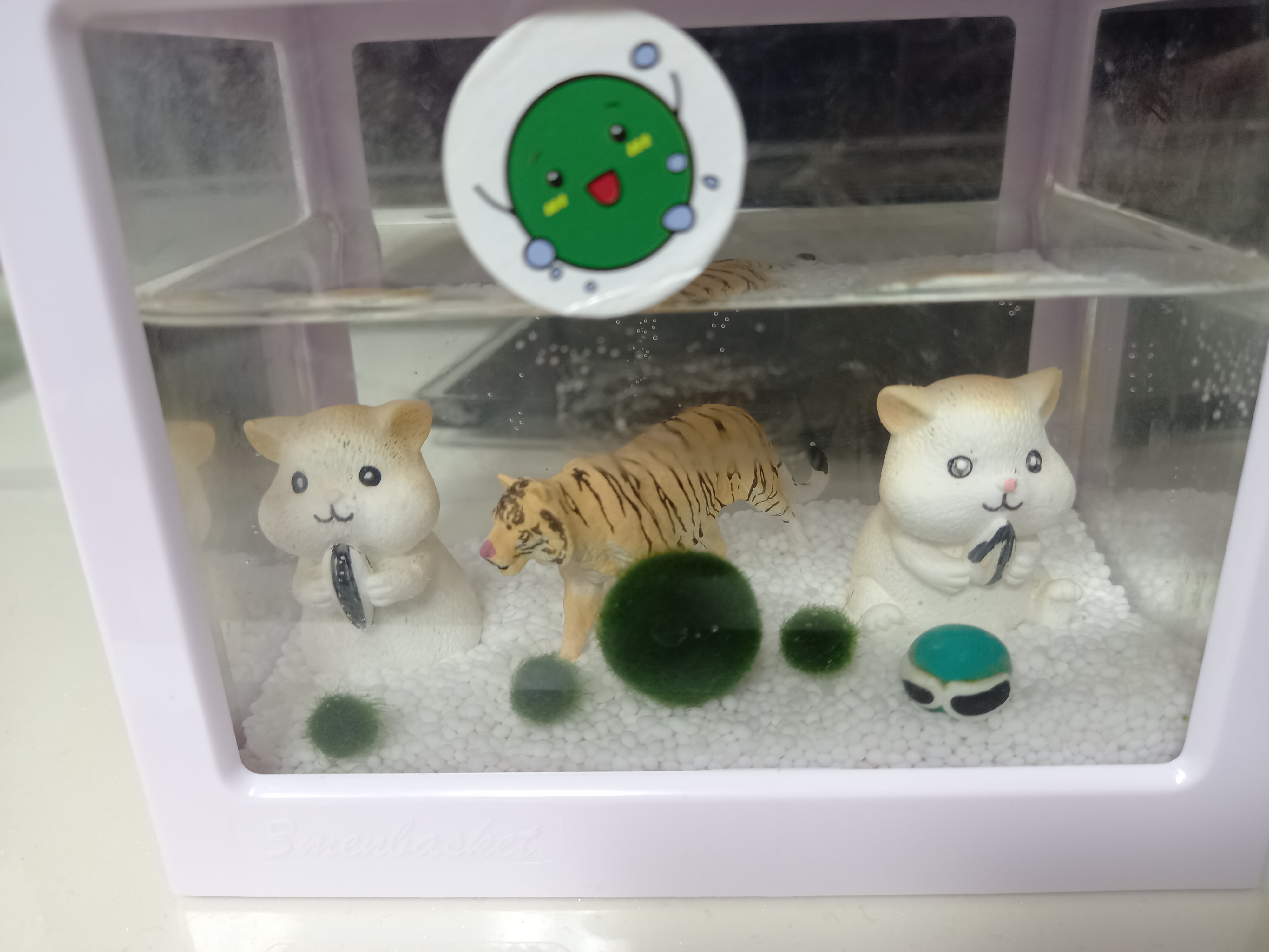 깨끗하게 청소를 했지만 어항 안에 있는 햄스터 모형의 얼굴에는 이끼 자국이 조금 있네요. -ㅁ-;;