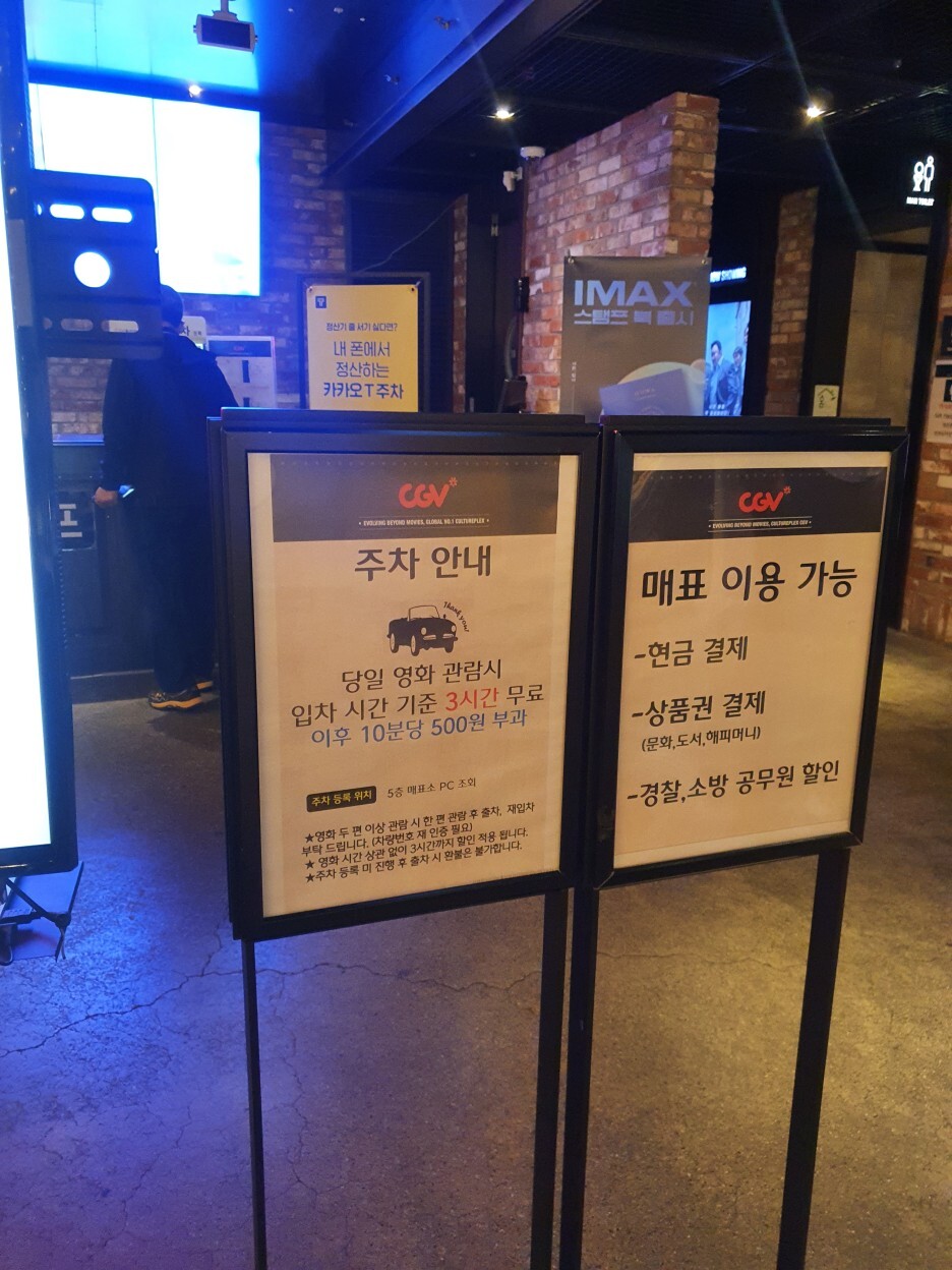 아!! 영화관람 무료주차 3시간에