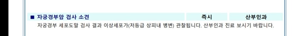 검사소견상 즉시 산부인과 진료를 다시 보라고 되어 있었어요.