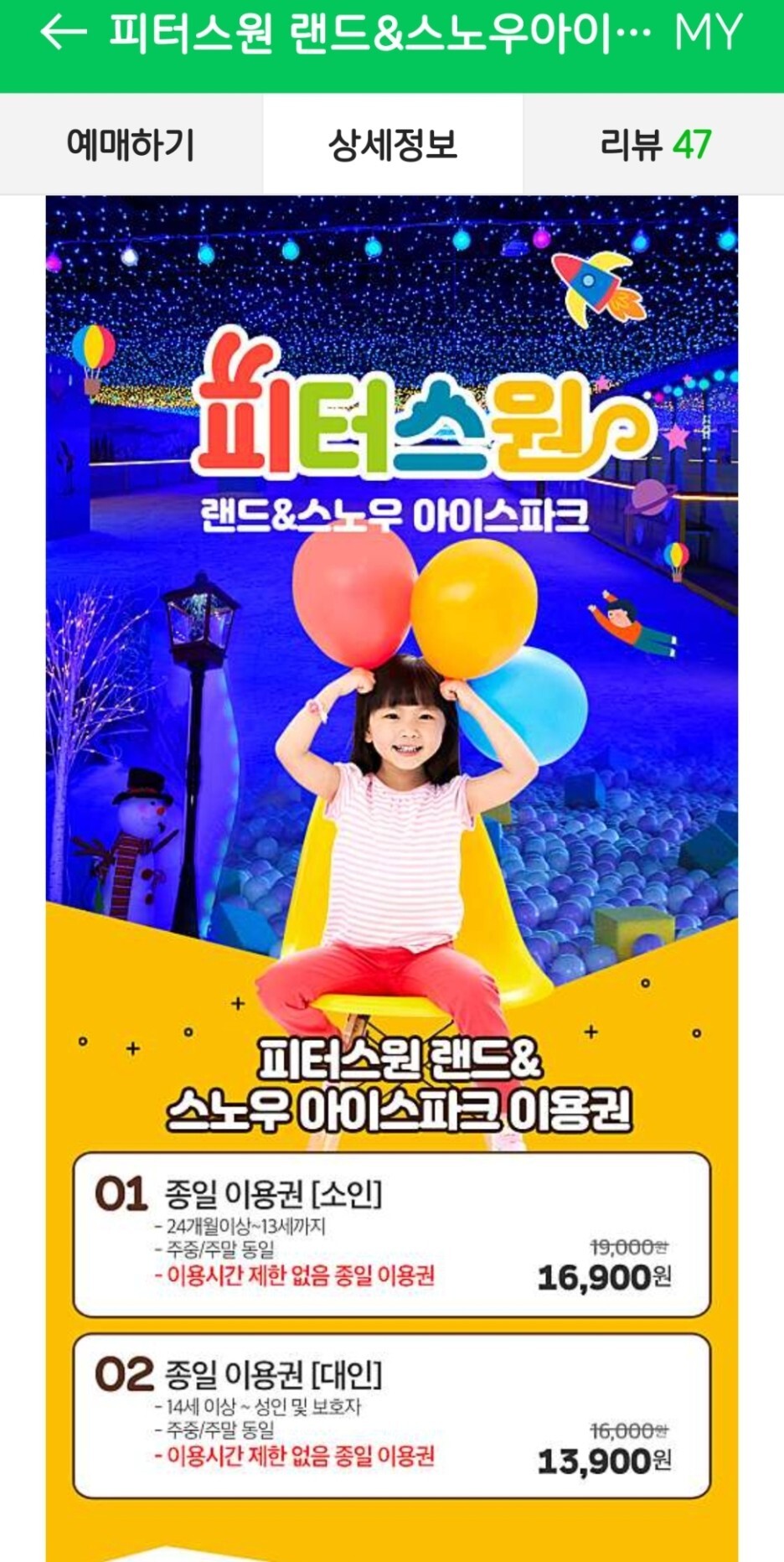 지하1층 아이스 스노우파크 & 5층 테마파크 이용가능해요.