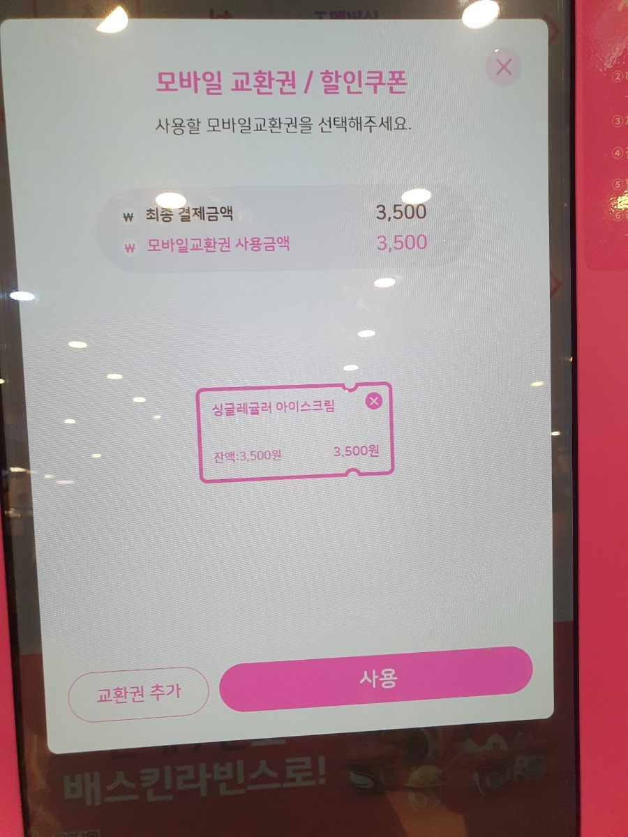 배스킨라빈스 모바일쿠폰이 하나 생겨서