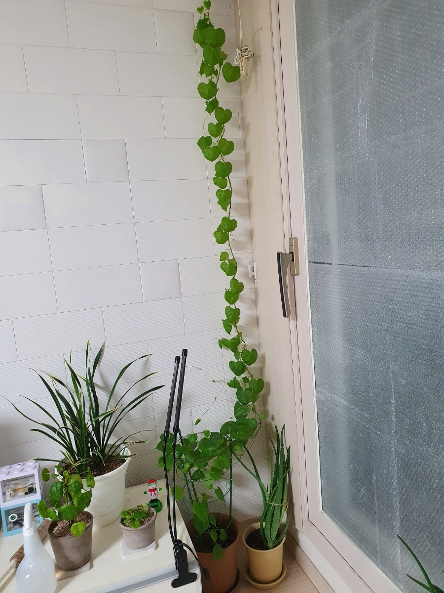 5월 말에 막둥이가 유치원에서 가져온 나팔꽃 새싹!! 꽃 피는 거 보고 싶다는 아이의 말에 열심히 키웠는데 9월이 되도록 꽃은 안 피고 잎만 무성히 늘어갔다. 나팔꽃이 천장까지😨 나팔꽃 키운