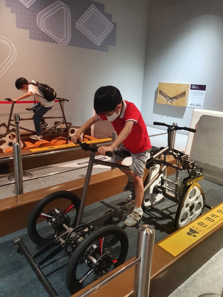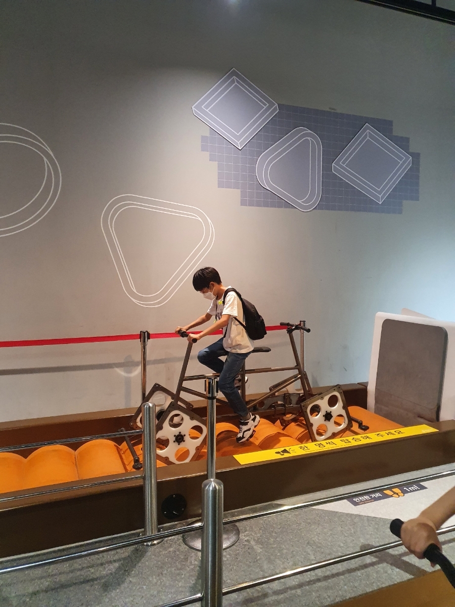 다양한 모양의 바퀴로 된 자전거 타보기.