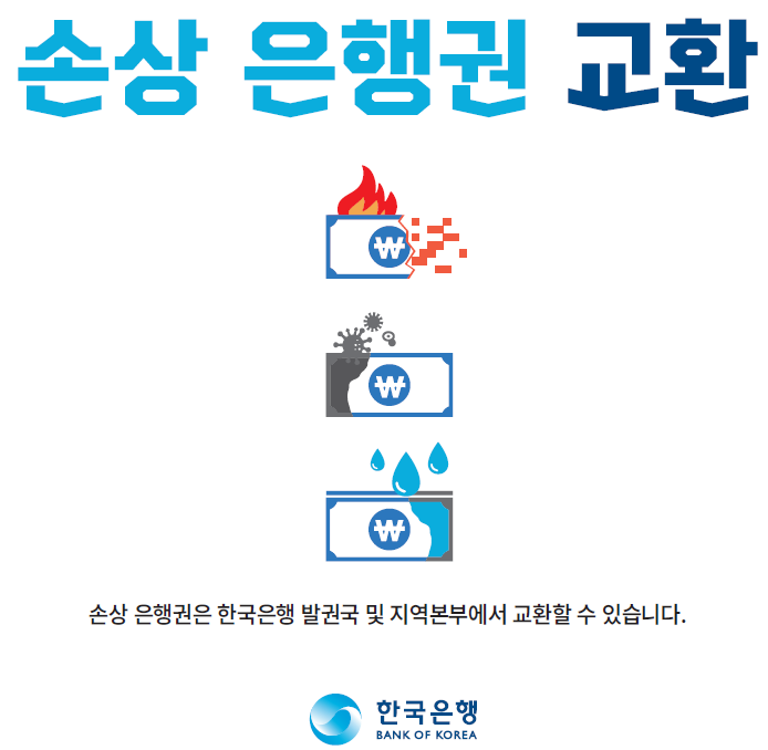 사실은, 한국은행에서 일정 기준에 따라 손상권을 교환해준답니다.