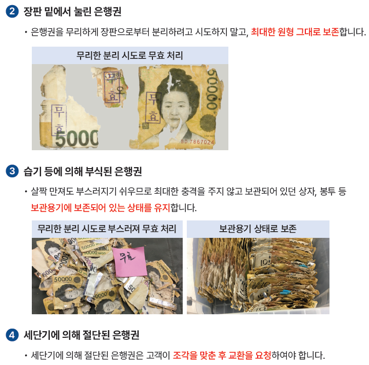 ✔️ 손상 지폐 보관 시 주의사항