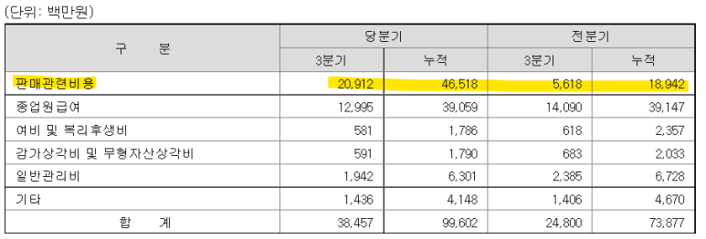 판매관련비용도 작년에 비해 거의 3~4배가 증가한게 아마도 물류비 때문일까요???