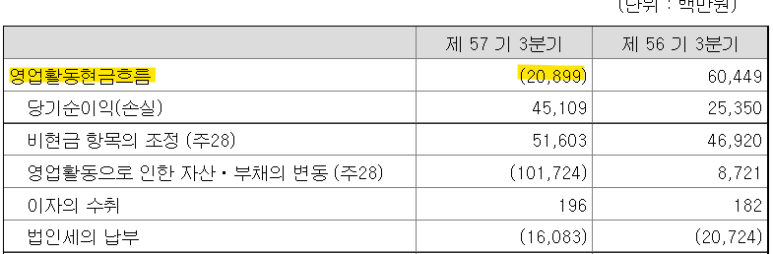 현금흐름을 보니 살짝 이해가 되는게 3분기 누적으로 약 200이 마이너스입니다.