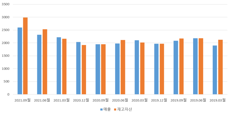 재고 자산은 그래프로 그려보니 확실히 늘어가고 있습니다.