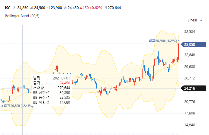 현재에도 투자를 하고 있는 ISC의 차트입니다.